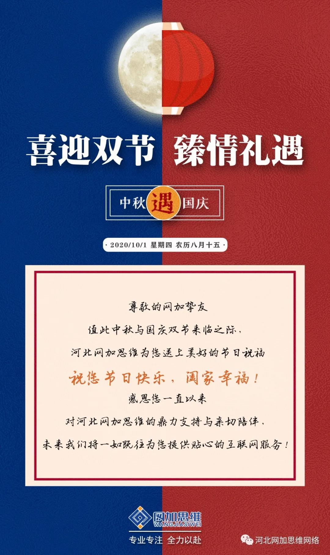 河北網加思維全體員工向長期以來支持與陪伴我們的網加摯友們,送上節日祝福,祝您:節日快樂,闔家幸福!